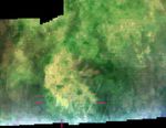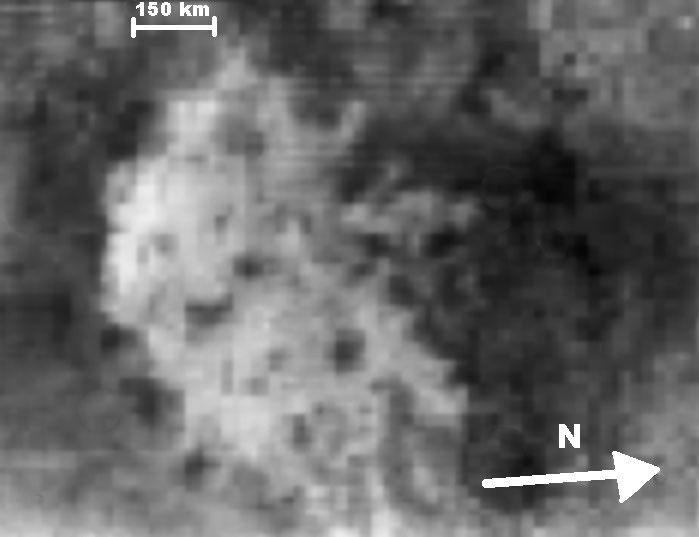This infrared image taken by the visual and infrared mapping spectrometer on NASA's Cassini spacecraft shows Hotei Arcus, a region on Saturn's moon Titan where changes in brightness have been measured several times during the last four years.