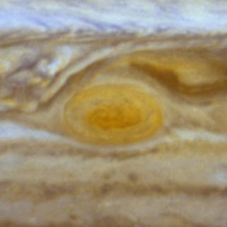 When 17th-century astronomers first turned their telescopes to Jupiter, they noted a conspicuous reddish spot on the giant planet. This Great Red Spot is still present in Jupiter's atmosphere, more than 300 years later. It is now known that it is a vast storm, spinning like a cyclone. Unlike a low-pressure hurricane in the Caribbean Sea, however, the Red Spot rotates in a counterclockwise direction in the southern hemisphere, showing that it is a high-pressure system. Winds inside this Jovian storm reach speeds of about 270 mph.
