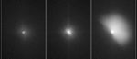 These pictures of comet Tempel 1 were taken by NASA's Hubble Space Telescope. They show the comet before and after it ran over NASA's Deep Impact probe.