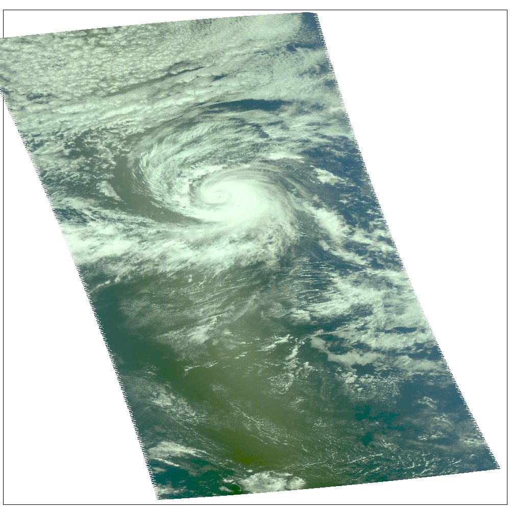 The microwave image is created from microwave radiation emitted by Earth's atmosphere and received by the instrument. It shows where the heaviest rainfall is taking place (in blue) in the storm. Blue areas outside of the storm where there are either some clouds or no clouds, indicate where the sea surface shines through.
