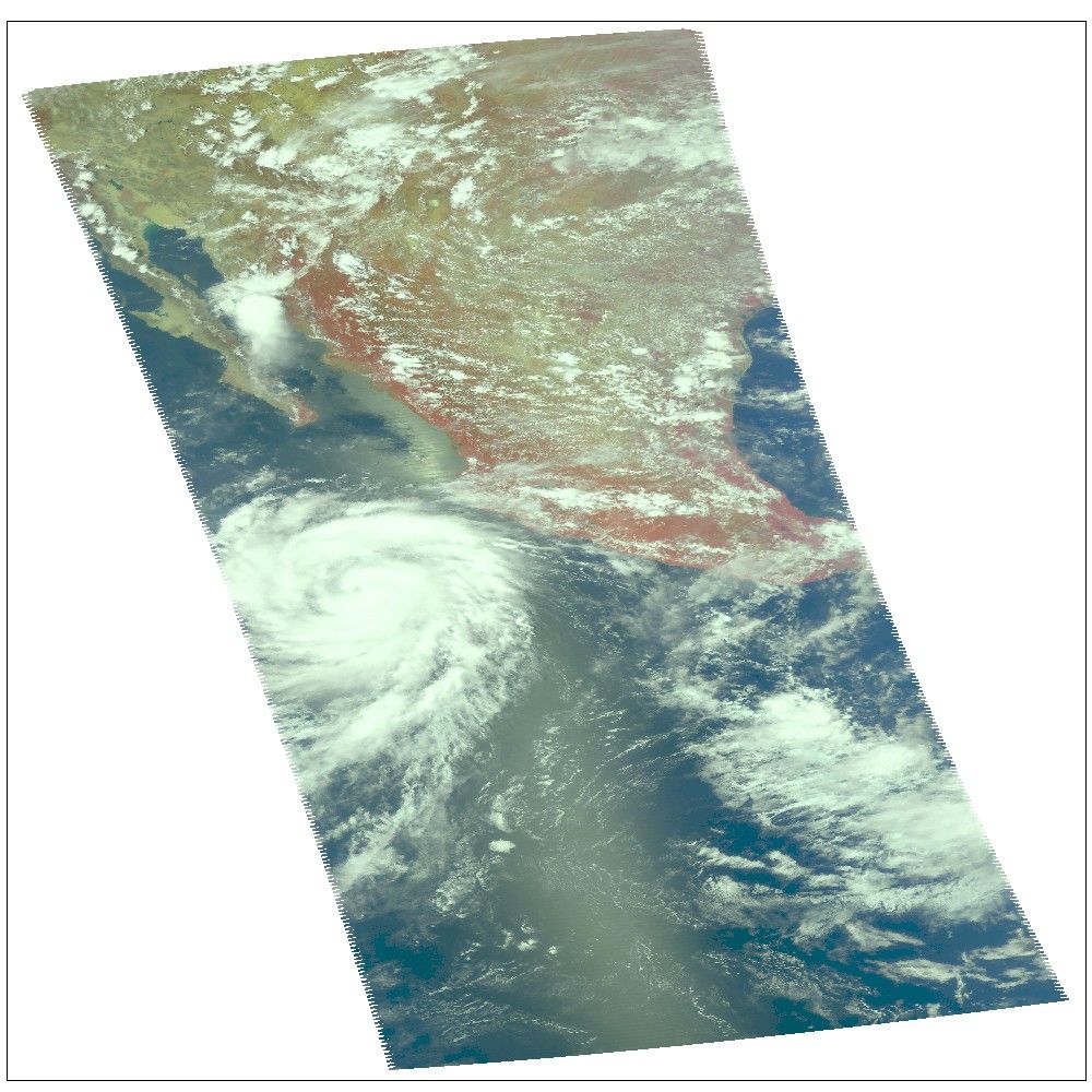 At the time the data were taken from which these images were made, Ileana is still intensifying. Peak winds were 100 knots and the minimum pressure 960mb. Major convection/rain bands can be seen in the NE quadrant of the storm.