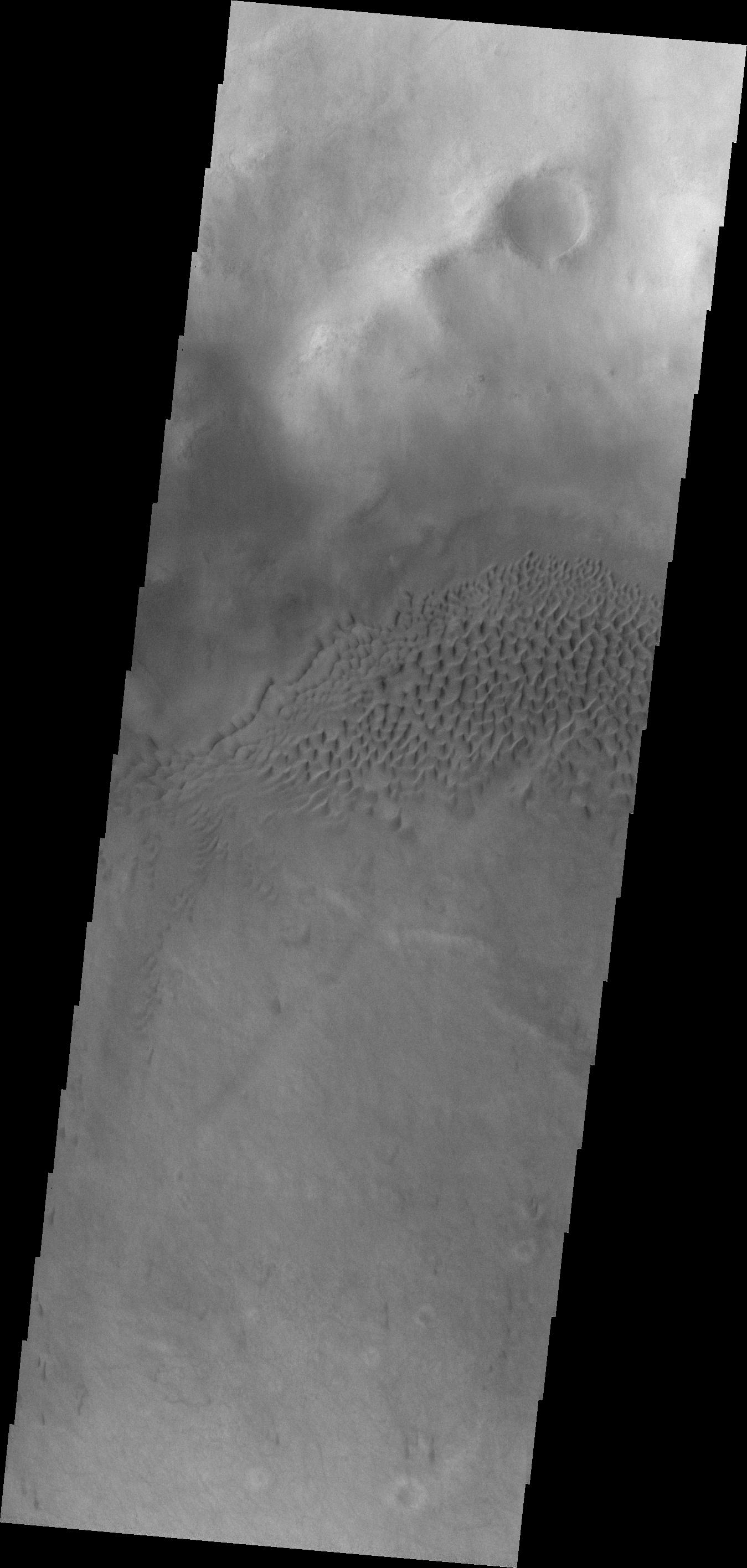This VIS image shows part of the dune field on the floor of Hussey Crater.