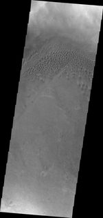 The dunes in today's VIS image are located on the floor of Hussey Crater in Terra Sirenum.