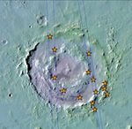 Lyot Crater, pictured here, is one of at least nine craters in the northern lowlands of Mars with exposures of hydrated minerals detected from orbit, according to a June 25, 2010, report.