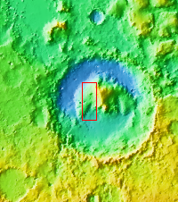 During the month of April Mars will be in conjunction relative to the Earth. This means the Sun is in the line-of-sight between Earth and Mars, and communication between the two planets is almost impossible. For conjunction, the rovers and orbiting spacecraft at Mars continue to operate, but do not send the data to Earth. This recorded data will be sent to Earth when Mars moves away from the sun and the line-of-sight between Earth and Mars is reestablished. During conjunctionthe THEMIS image of the day will be a visual tour of Gale Crater, the location of the newest rover Curiosity.