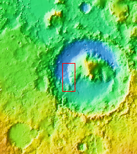 During the month of April Mars will be in conjunction relative to the Earth. This means the Sun is in the line-of-sight between Earth and Mars, and communication between the two planets is almost impossible. For conjunction, the rovers and orbiting spacecraft at Mars continue to operate, but do not send the data to Earth. This recorded data will be sent to Earth when Mars moves away from the sun and the line-of-sight between Earth and Mars is reestablished. During conjunction the THEMIS image of the day will be a visual tour of Gale Crater, the location of the newest rover Curiosity.