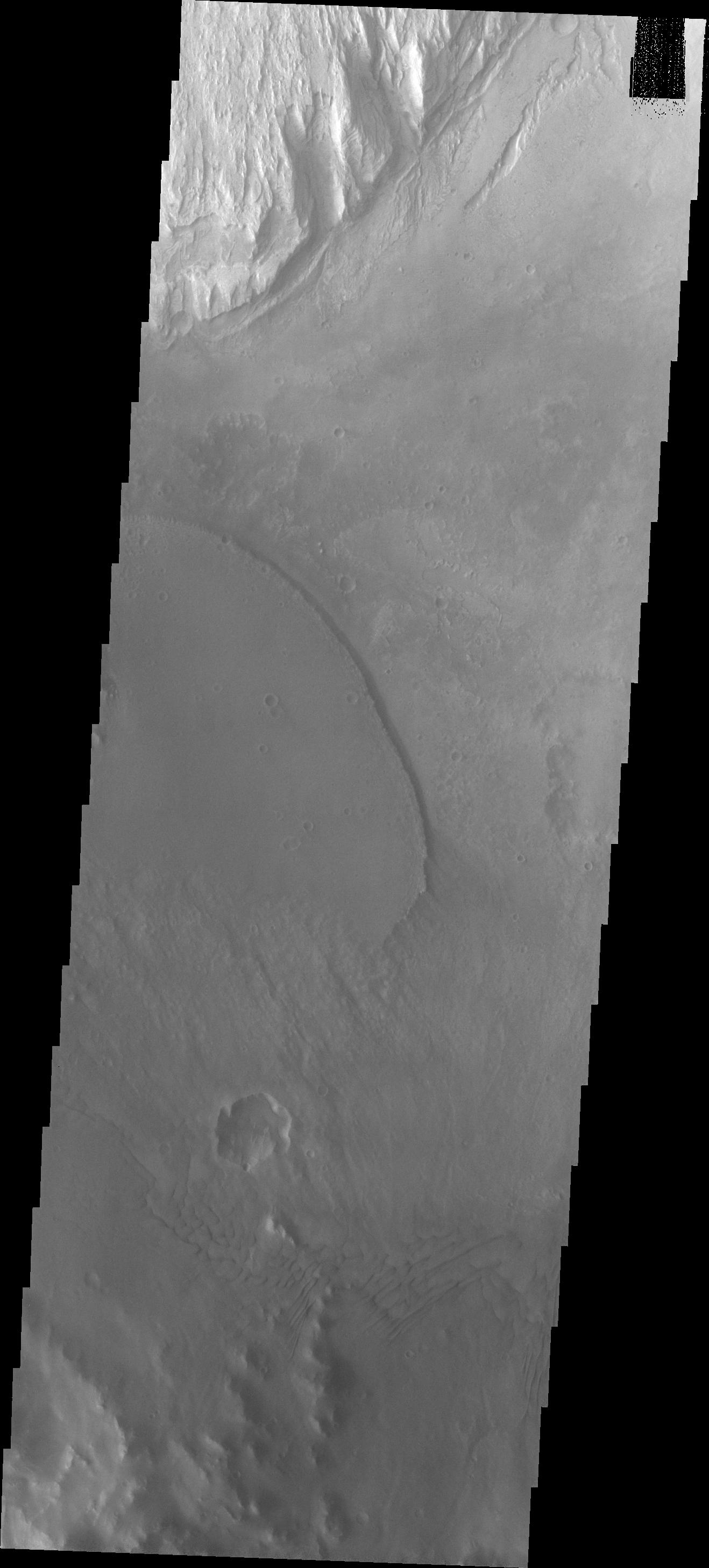 As we begin to move back eastward across the southern part of Gale Crater, this image shows more of the dark material deposited from the large channel through the SW rim of the crater. In this image that material has a sharp edge (center of frame) where it overlays the crater floor.