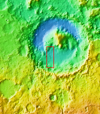 During the month of April Mars will be in conjunction relative to the Earth. This means the Sun is in the line-of-sight between Earth and Mars, and communication between the two planets is almost impossible. For conjunction, the rovers and orbiting spacecraft at Mars continue to operate, but do not send the data to Earth. This recorded data will be sent to Earth when Mars moves away from the sun and the line-of-sight between Earth and Mars is reestablished. During conjunction the THEMIS image of the day will be a visual tour of Gale Crater, the location of the newest rover Curiosity.