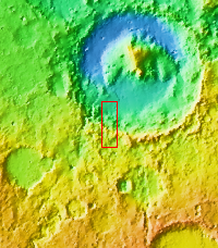 Today's image shows the southwest rim of Gale Crater, including a small, younger crater.