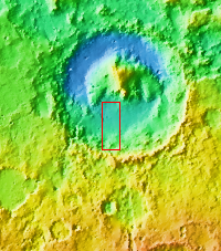 During the month of April Mars will be in conjunction relative to the Earth. This means the Sun is in the line-of-sight between Earth and Mars, and communication between the two planets is almost impossible. For conjunction, the rovers and orbiting spacecraft at Mars continue to operate, but do not send the data to Earth. This recorded data will be sent to Earth when Mars moves away from the sun and the line-of-sight between Earth and Mars is reestablished. During conjunction the THEMIS image of the day will be a visual tour of Gale Crater, the location of the newest rover Curiosity.