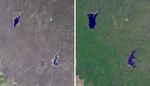 The effects of California's severe multiyear drought can be clearly seen in this pair of images acquired by the Advanced Spaceborne Thermal Emission and Reflection Radiometer (ASTER) instrument on NASA's Terra spacecraft. The images show an area northeast of Madera, in the Sierra Nevada Moutains foothills between Yosemite National Park and the San Joaquin Valley. The right image was acquired April 5, 2011, when winter rainfall was at a normal level. H.V. Eastman and Hensley Lakes, and numerous stock tanks, are full, and green vegetation carpets the landscape. Three years later, when the left image was acquired on May 15, 2014, the drying up of the reservoirs is apparent, as is the browning of the grass- and shrub-lands. The images cover an area of 12.1 by 14 miles (19.5 by 22.5 kilometers), and are located at 37.2 degrees north, 119.9 degrees west.