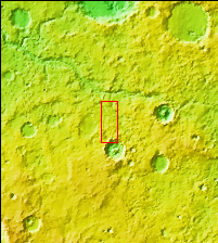 The two channels visible at the top of this image are tributaries of Indus Vallis. Ejecta from an unnamed crater south of this image fills the bottom half of the VIS image. Indus Vallis is located in Terra Sabaea.