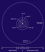 The terrestrial planets are the four innermost planets in the solar system: Mercury, Venus, Earth, and Mars. They are called terrestrial because they have a compact, rocky surface like the Earth's. The planets Venus, Earth, and Mars have significant atmospheres, while Mercury has almost none. This diagram shows the approximate distances of the terrestrial planets from the Sun.