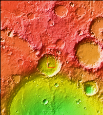 This VIS image shows part of the crater rim and floor of an unnamed crater located in Terra Sirenum on the north rim of Newton Crater. The rim of the crater is in the upper half of the image. Several rounded features are located near the top of the rim. Rather than being impact craters, these features are more likely formed by collapse of the crater rim. In this type of slope failure a block of material slides down a fracture leaving a scalloped shaped feature with a block of material along the lower edge of the slope. There are also several channels dissecting the rim. This crater has a central peak, just off the image at the bottom left corner. The channels in the bottom part of the image are flowing away from the peak.