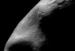 This picture was taken from NEAR on February 15, 2000, while the spacecraft was passing directly over the large gouge that creates Eros's characteristic peanut shape. It is a mosaic of individual images showing features as small as 120 feet (35 meters) across. Although most of the asteroid is in shadow, we are able to see inside the gouge. Many narrow parallel troughs closely follow the shape of the gouge. Although they appear curvilinear from this view, they are most likely oriented parallel to the length of the asteroid. The strong lighting contrast along the terminator (the line separating day from night on Eros) makes it easy to see that most of the surface is saturated with impact craters. Inside the gouge, however, only smaller craters are present, indicating that the area within the gouge is younger than the surface along the terminator. This implies that the event that caused the gouge must have happened more recently than the formation of the rest of the surface of Eros.