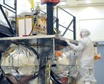 A technician inspects the special radiation vault being installed atop the propulsion module of NASA's Juno spacecraft. The radiation vault has titanium walls to protect the spacecraft's electronic brain and heart from Jupiter's harsh radiation environment. The vault will dramatically slow the aging effect radiation has on the electronics for the duration of the mission.