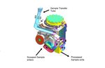 This cutaway view shows the internal chambers of the Collection and Handling for In-Situ Martian Rock Analysis (CHIMRA) device, attached to the turret at the end of the robotic arm on NASA's Curiosity Mars rover. Samples from the drill enter via the sample transfer tube, and samples from the scoop enter from the location shown at bottom. The pink line shows the path samples travel from the scoop (red) to the 150-micrometer sieve (green rectangle) to the portion box (yellow), where they are then delivered to the analytical lab instruments.