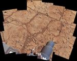 Shown on this mosaic are the four targets that were considered for drilling, all of which were analyzed by Curiosity's instrument suite. At "Brock Inlier," data from the Alpha Particle X-ray Spectrometer (APXS) and images from the Mars Hand Lens imager (MAHLI) were collected. The target "Wernecke" was brushed by the Dust Removal Tool (DRT) with complementary APXS, MAHLI, and Chemistry and Camera (ChemCam) analyses. Target "Thundercloud" was the subject of the drill checkout test known as "percuss on rock." The target Drill was interrogated by APXS, MAHLI and ChemCam.