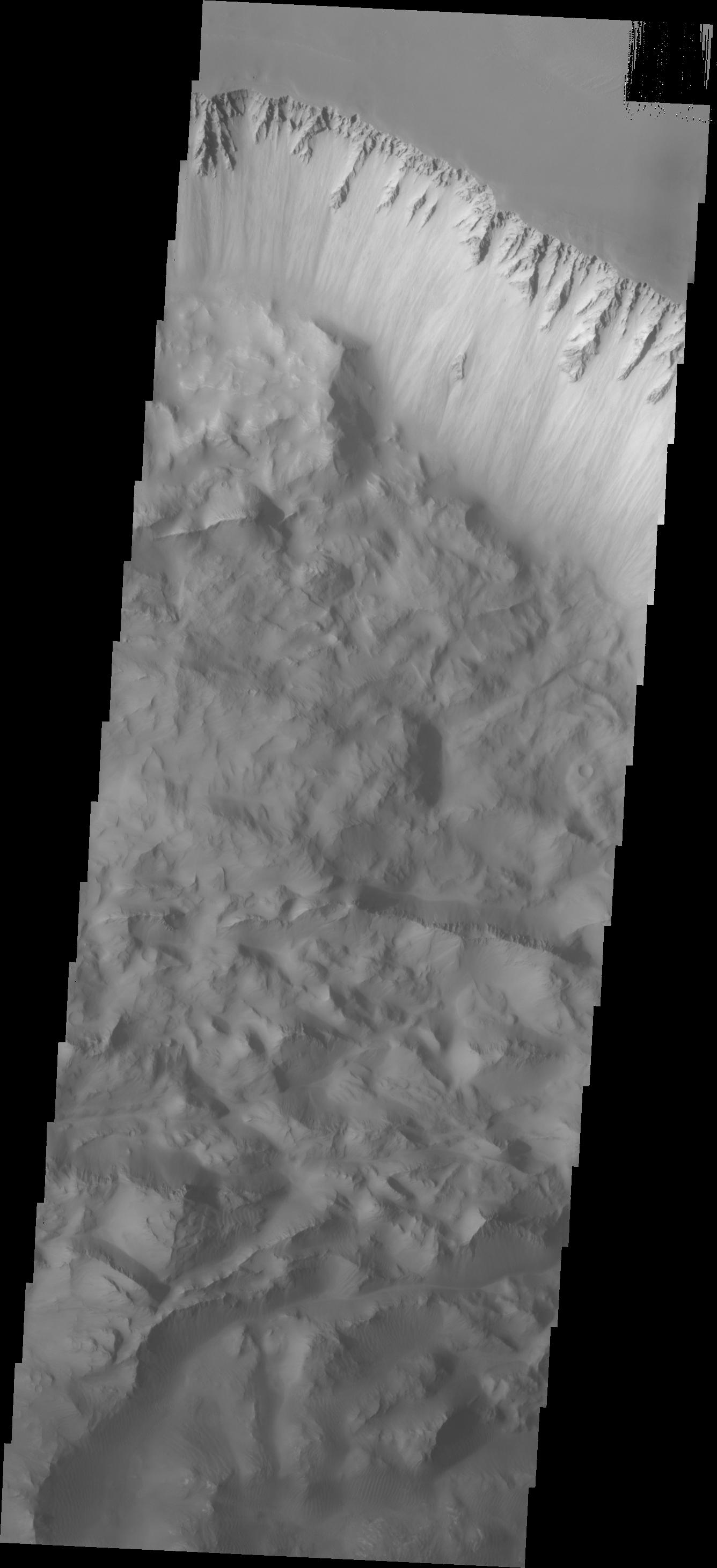 Continuing eastward along Ius Chasma, this image shows the eastern section of the large landslide deposit seen in yesterday's post.
