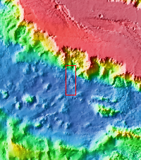 Melas Chasma is part of the largest canyon system on Mars, Valles Marineris. At only 563 km long (349 miles) it is not the longest canyon, but it is the widest. Located in the center of Valles Marineris, it has depths up to 9 km below the surrounding plains, and is the location of many large landslide deposits, as will as layered materials and sand dunes. There is evidence of both water and wind action as modes of formation for many of the interior deposits. This VIS image is located along the northern cliff face of the chasma. The linear features are large landslide surfaces. A region of sand dunes is located along the change in elevation from the cliff face at the top of the image and the floor of the canyon at the bottom of the image.