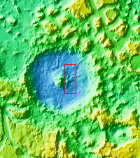 This image of Moreux Crater shows part of the central peak and fields of sand dunes on the crater floor surrounding the peak. This image is just north of the previous image and illustrates the abundance of sand dunes located on the floor of the crater. The lower elevations of the central peak are visible on the left side of the image, with the highest elevations just off the image edge. The part of the peak with a pitted surface texture has been interpreted to be created by glacial flows. Moreux Crater is located in northern Arabia Terra and has a diameter of 138 kilometers.