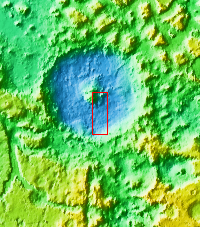 This image of Moreux Crater shows part of the multitude of sand dunes that are found on the floor of the crater. The central peak of the crater is at the top left corner of the image. The crater rim is visible at the bottom right corner. The part of the peak with a pitted surface texture and curvilinear ridges has been interpreted to be created by glacial flows. Moreux Crater is located in northern Arabia Terra and has a diameter of 138 kilometers.