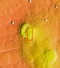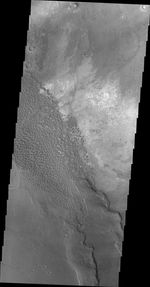 This image shows part of the Nili Patera dune field. High resolution imaging by other spacecraft has revealed that the dunes in this region are moving. Winds are blowing the dunes across a rough surface of regional volcanic lava flows. The paterae are calderas on the volcanic complex called Syrtis Major Planum. Dunes are found in both Nili and Meroe Paterae and in the region between the two calderas.