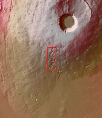 This image shows part of the southern flank of Pavonis Mons. The linear and sinuous features mark the locations of lava tubes and graben that occur on both sides of the volcano along a regional trend that passes thru Pavonis Mons, Ascreaus Mons (to the north), and Arsia Mons (to the south). The majority of the features are believed to be lava tubes where the ceiling has collapsed into the free space below. This often happens starting in a circular pit and then expanding along length of the tube until the entire ceiling of material has collapsed into the bottom of the tube.