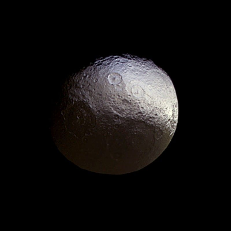 The view was obtained by the Cassini spacecraft narrow-angle camera on March 27, 2015 at a distance of approximately 621,000 miles (1 million kilometers) from Iapetus and at a Sun-Iapetus-spacecraft, or phase, angle of 38 degrees. Image scale on Iapetus is about 4 miles (6 kilometers).