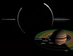 NASA's Galileo spacecraft acquired this mosaic of Jupiter's ring system (top) when the spacecraft was in Jupiter's shadow looking back toward the Sun. Jupiter's ring system (inset diagram) is composed of three parts: an outermost gossamer ring, a flat main ring, and an innermost donut-shaped halo. These rings are made up of dust-sized particles that are blasted off of the nearby inner satellites by small impacts. This image was taken on November 9, 1996 at a distance of 2.3 million kilometers (1.4 million miles).