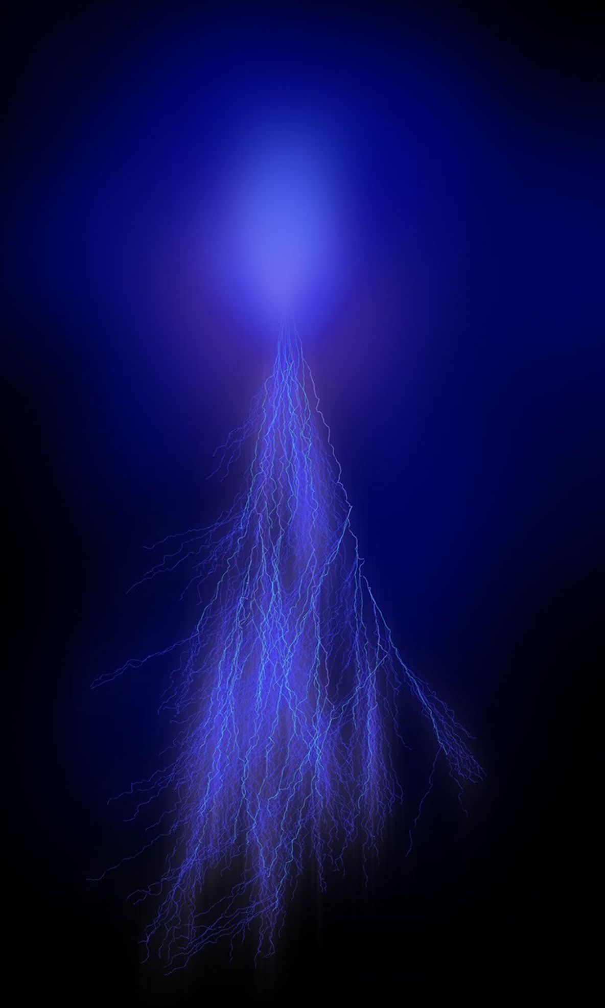 This illustration shows what a sprite could look like in Jupiter's atmosphere. Named after a mischievous, quick-witted character in English folklore, sprites last for only a few milliseconds. They feature a central blob of light with long tendrils of light extending down toward the ground and upward. In Earth's upper atmosphere, their interaction with nitrogen give sprites a reddish hue. At Jupiter, where the predominance of hydrogen in the upper atmosphere would likely give them a blue hue.