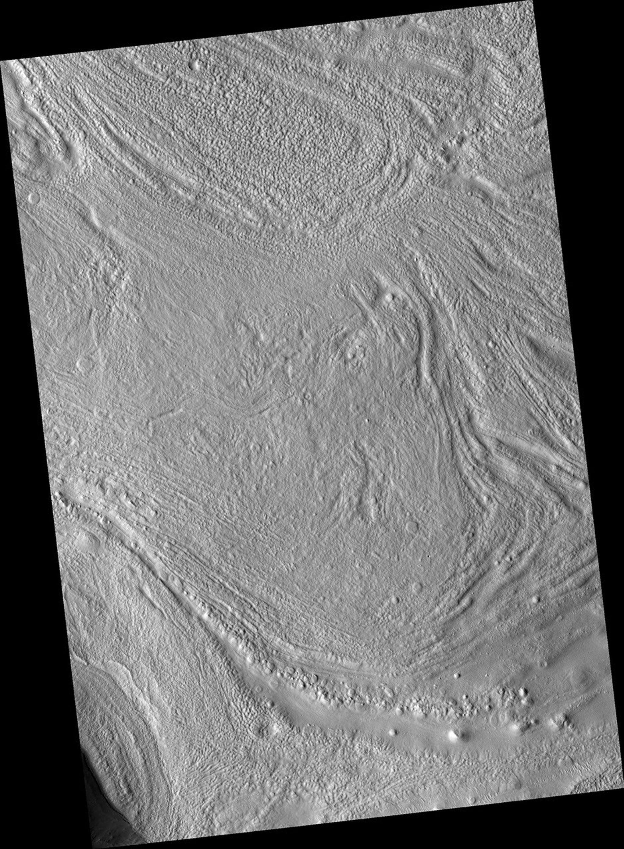 Image PSP_001438_2160 was taken by the High Resolution Imaging Science Experiment (HiRISE) camera onboard the Mars Reconnaissance Orbiter spacecraft on November 16, 2006. The complete image is centered at 35.5 degrees latitude, 56.6 degrees East longitude. The range to the target site was 291.6 km (182.2 miles). At this distance the image scale is 29.2 cm/pixel (with 1 x 1 binning) so objects ~88 cm across are resolved. The image shown here has been map-projected to 25 cm/pixel and north is up. The image was taken at a local Mars time of 3:25 PM and the scene is illuminated from the west with a solar incidence angle of 49 degrees, thus the sun was about 41 degrees above the horizon. At a solar longitude of 136.3 degrees, the season on Mars is Northern Summer.