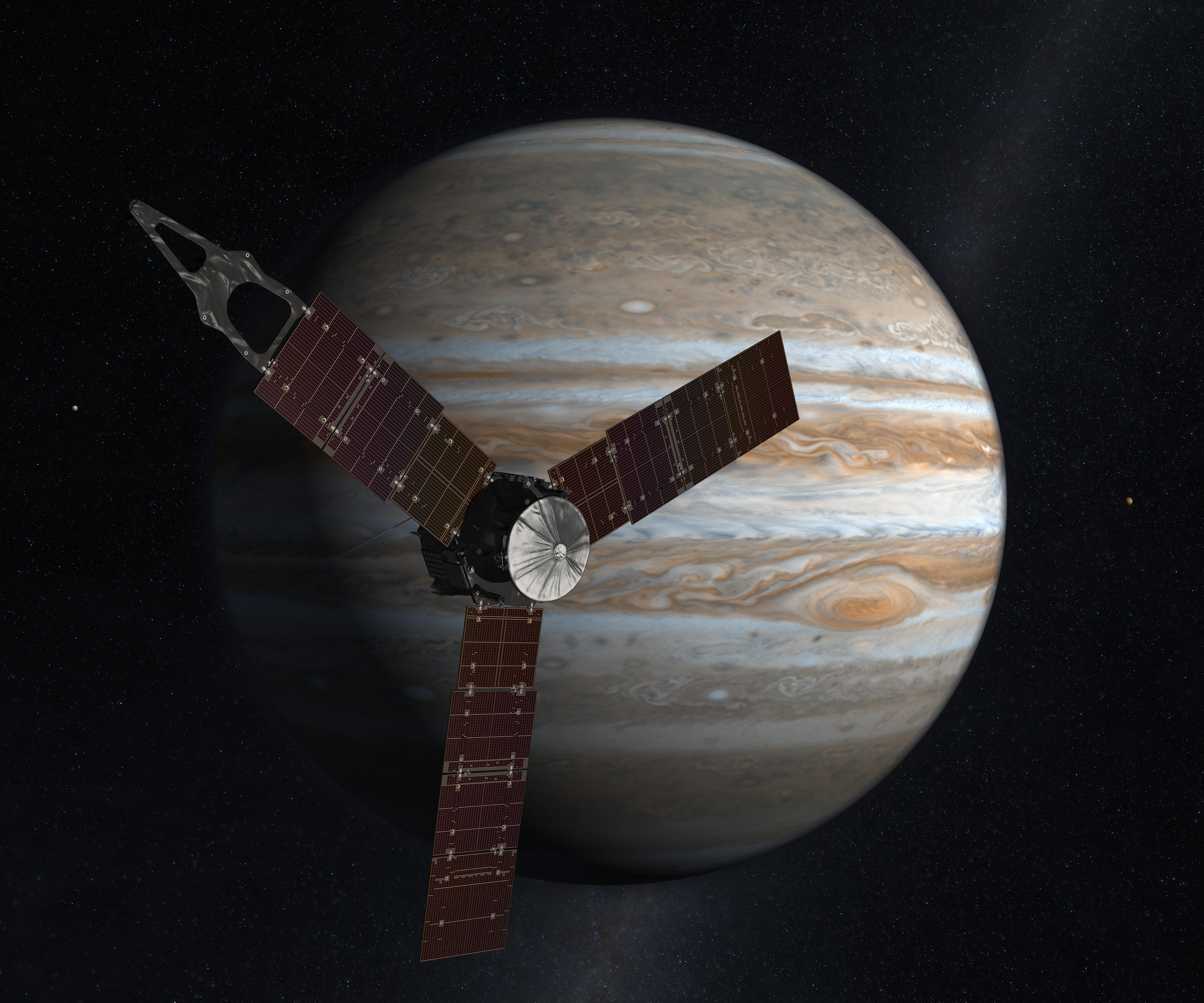 Launching from Earth in 2011, the Juno spacecraft will arrive at Jupiter in 2016 to study the giant planet from an elliptical, polar orbit. Juno will repeatedly dive between the planet and its intense belts of charged particle radiation, coming only 5,000 kilometers (about 3,000 miles) from the cloud tops at closest approach.