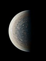 Juno acquired the image, looking directly at the Jovian south pole, on February 2, 2017, at 6:06 a.m. PST (9:06 a.m. EST) from an altitude of about 63,400 miles (102,100 kilometers) above Jupiter's cloud tops. Cyclones swirl around the south pole, and white oval storms can be seen near the limb -- the apparent edge of the planet.