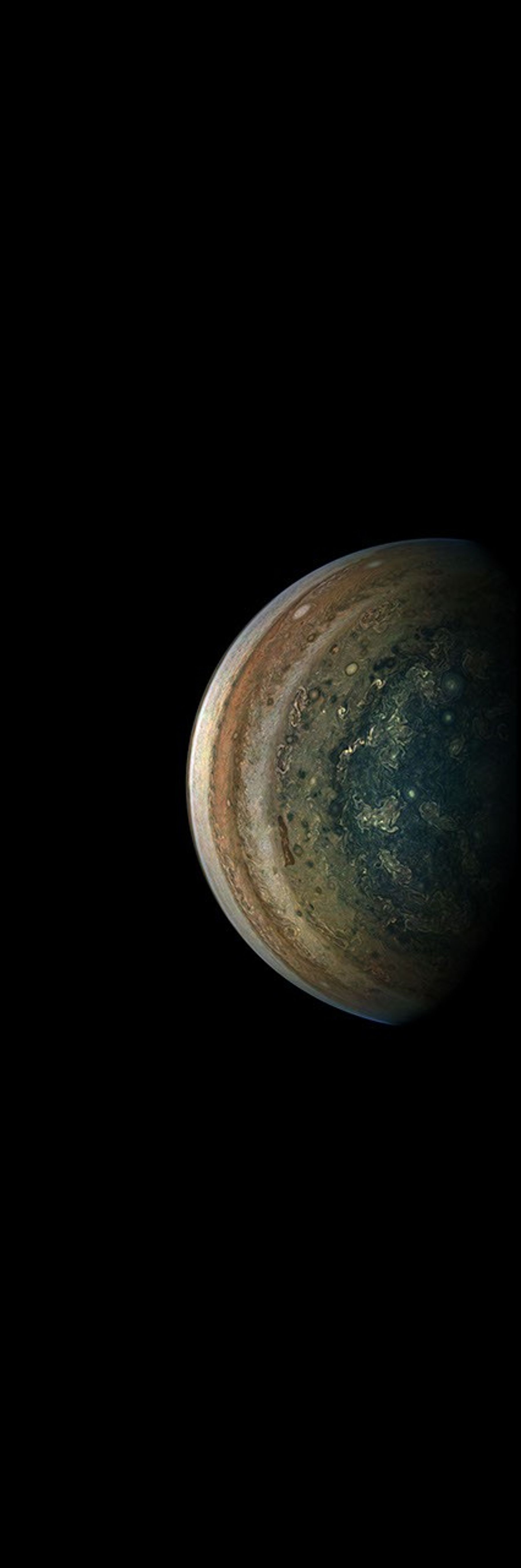 In the final minutes of a recent close flyby of Jupiter, NASA's Juno spacecraft captured a departing view of the planet's swirling southern hemisphere.