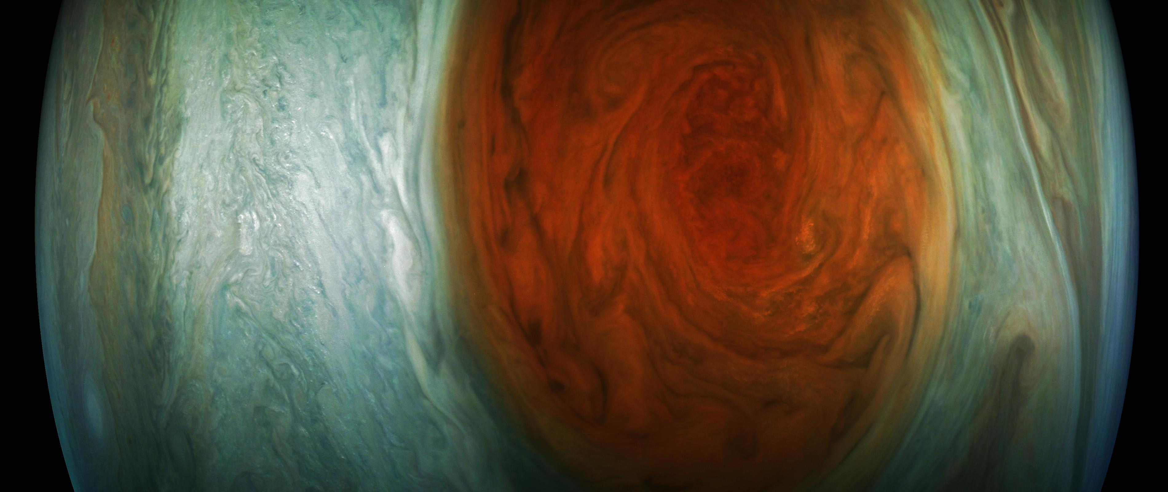 This enhanced-color image of Jupiter's Great Red Spot was created by citizen scientist Gerald Eichstädt using data from the JunoCam imager on NASA's Juno spacecraft.