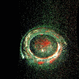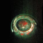 The red coloring of some of the features indicates that those emissions came from deeper in Jupiter's atmosphere; green and white indicate emissions from higher up in the atmosphere.