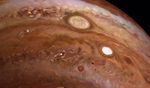 A JunoCam image of Jupiter's storm "Oval BA", taken on Juno's 26th perijove (PJ) pass, inspired this work of art, suitable for framing. Oval BA can be seen near the top of the image, a storm approximately the same size as Earth. The bright storm below and to the right of Oval BA is one of Jupiter's anticyclonic (counterclockwise-rotating) white ovals, common at this latitude, dubbed the string of pearls.