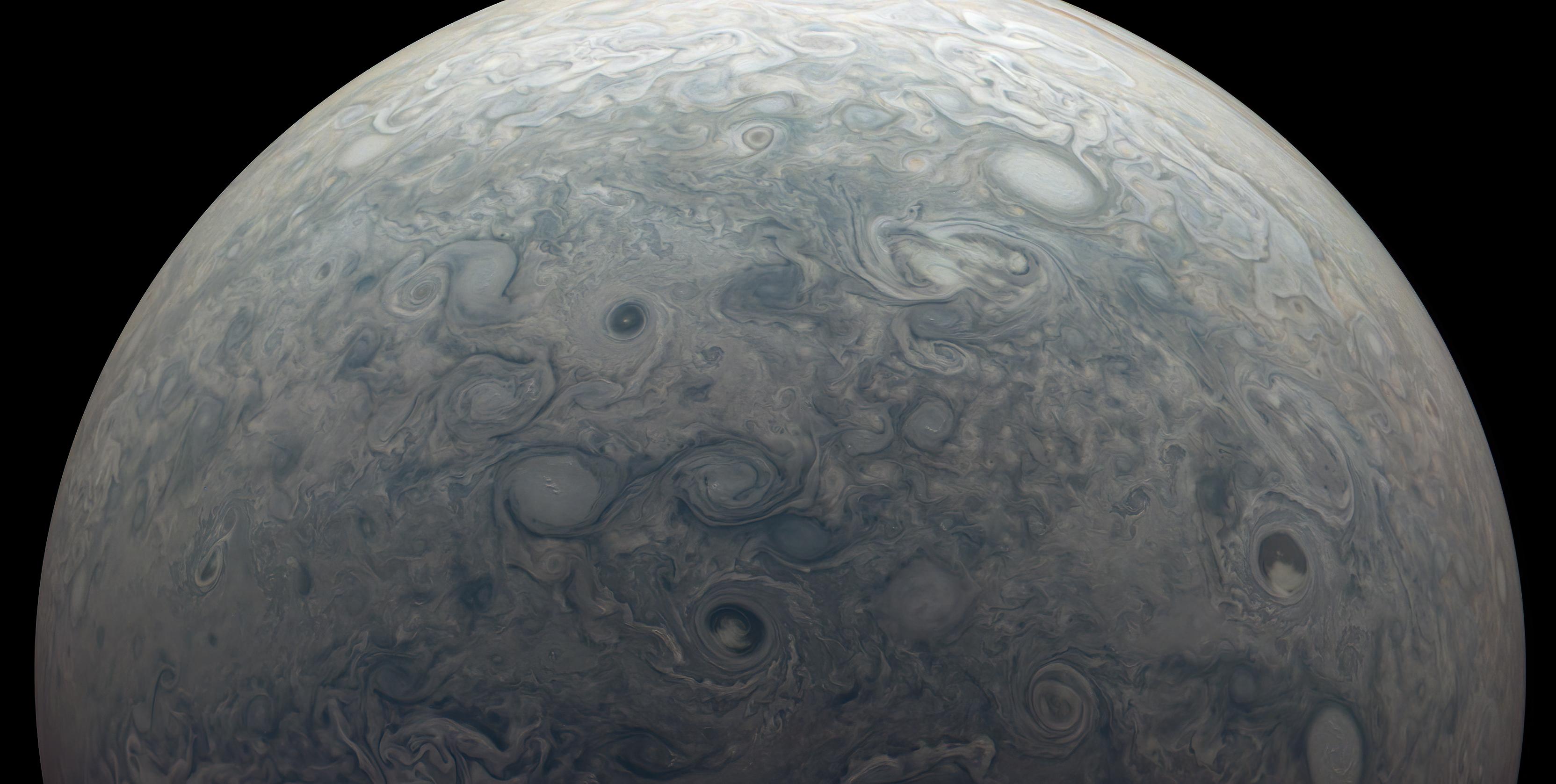 This image from NASA's Juno mission captures the northern hemisphere of Jupiter around the region known as Jet N7. The planet's strong winds create the many swirling storms visible near the top of its atmosphere. Data from Juno helped scientists discover another, less visible effect of those winds: Jupiter's powerful magnetic field changes over time. The winds extend more than 1800 miles (3000 kilometers) deep, where the material lower in Jupiter's atmosphere is highly conductive, electrically. Scientists determined that the wind shears this conductive material apart and carries it around the planet, which changes the shape of the magnetic field.