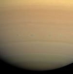 A line of vortices rolls through the turbulent region on Saturn nicknamed "Storm Alley" by Cassini scientists. This latitude band, centered around 35 degrees south, has displayed persistent, intensive storm activity since Cassini began its approach to Saturn in early 2004.