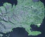 The Kerguelen Islands (also known as the Desolation Islands) are part of the French Southern and Antarctic lands. Located in the southern Indian Ocean, the islands are among the most isolated places on Earth, more than 3200 km away from the nearest populated location. The largest island is Grand Terre (120 by 150 km), with the capital city of Port-aux-Francais. Total population is around 100; all travel and transport is by ship. The French Space Agency operates a satellite and tracking station near the town. The image shows the eastern part of the island, and covers an area of 43 by 35 km, is located at 49.3 degrees south, 69.4 degrees east, and was acquired February 27, 2009.