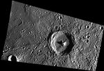 Today's image introduces crater Kosho, which sits in Mercury's northern hemisphere. Kosho, 65 km (~40 mi.) in diameter, is a complex crater. The long shadows in this image accentuate Kosho's central peak, which is approximately 2 km (~1.2 mi.) high. Kosho crater is named for a thirteenth century Japanese sculptor famous for his depictions of Buddhist Monks.