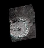 Dust off those red-cyan 3D glasses again to see Kuiper crater in three dimensions! This anaglyph image was created from two separate images taken under slightly different viewing conditions. This images shows the young Kuiper crater, the impact melt covering its floor, its tall central peaks, and its slumping walls. North is to the left in this image.
