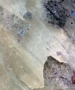 In the desert of southern Kuwait, three oil fields spread out across the empty landscape. The country has the world's fifth largest oil reserves, and the 2.8 million people live in the eleventh richest country in the world. The massive oil reserves were discovered in the 1930s, after the country had emerged as an independent sheikhdom under the protection of the British Empire. The image was acquired September 27, 2009, covers an area of 30 x 54 km, and is located at 28.8 degrees north latitude, 47.8 degrees east longitude.