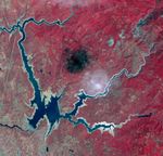 Oroville Dam in Northern California is an earth fill embankment dam, and is the tallest dam in the U.S. Lake Oroville is the second largest man-made lake in the state of California. The lake's capacity reflects the large swings in California's annual rainfall accumulation. With the reality of a very dry 2020-21 rain year, the 2014 data may anticipate this year's water shortage. On May 7, 2012, the lake held 3.5 million acre-feet of water, and was at maximum capacity. Two years later, on August 1, 2014, the lake held 1.2 million acre-feet of water, threatening the water supply to users of its water. The images cover an area of 22.5 by 23.4 km, and are located at 39.6 degrees north, 121.5 degrees west.