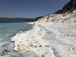 The eastern shore of Lake Salda in Turkey is a good analog for what an ancient lake may have looked like at Jezero Carter on Mars. The white sands and rocks are carbonate minerals that precipitated in the lake. The terraces on the right are old shorelines from when the lake levels were higher, where dried-out sediments have now cemented. These types of deposits might be present along the former shorelines at Jezero. What's more, these deposits might contain signs of microbes, if they ever existed on the Red Planet.
