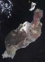 Los Volcanes Natural Park on Lanzarote in the Spanish Canary Islands is serving as a training ground to prepare for the next mission to the Moon and Mars. NASA and ESA use it for astronaut training and testing Mars Rovers. Astronauts are taught to become effective field geologists and geo-microbiologists in a planetary science context. The image was acquired February 14, 2014, covers an area of 32.7 by 58.5 km, and is located at 29 degrees north, 13.6 degrees west.