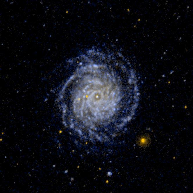 This ultraviolet image from NASA's Galaxy Evolution Explorer is of the large face on spiral galaxy NGC 3344. The inner spiral arms are wrapped so tightly that they are difficult to distinguish.