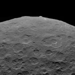 Ahuna Mons is about 12 miles (20 kilometers) across and 2.5 miles (4 kilometers) high and displays sodium carbonate along its flanks. This is the most recent of a potential two dozen cryovolcanoes whose remnants are found across Ceres' surface.