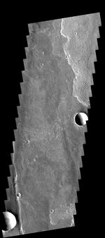 Note: this THEMIS visual image has not been radiometrically nor geometrically calibrated for this preliminary release. An empirical correction has been performed to remove instrumental effects. A linear shift has been applied in the cross-track and down-track direction to approximate spacecraft and planetary motion. Fully calibrated and geometrically projected images will be released through the Planetary Data System in accordance with Project policies at a later time.